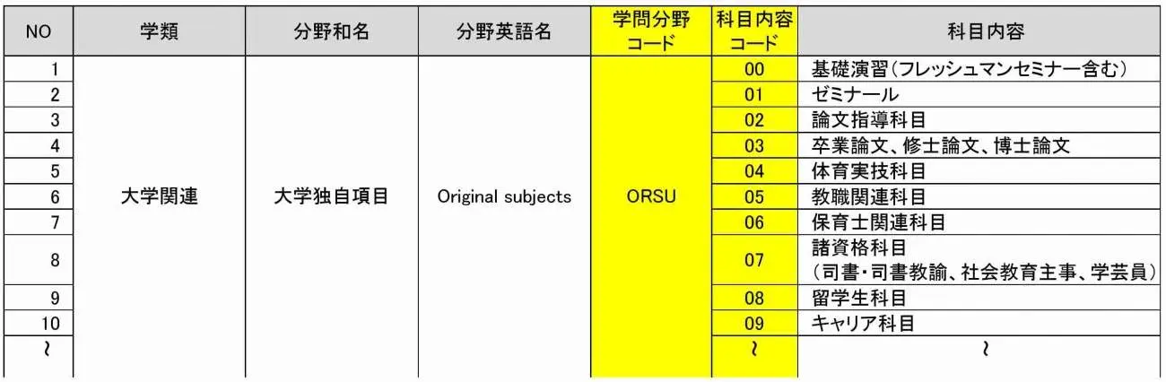 ② 学問分野コード(英字4文字)・③ 科目内容コード(数字2桁)