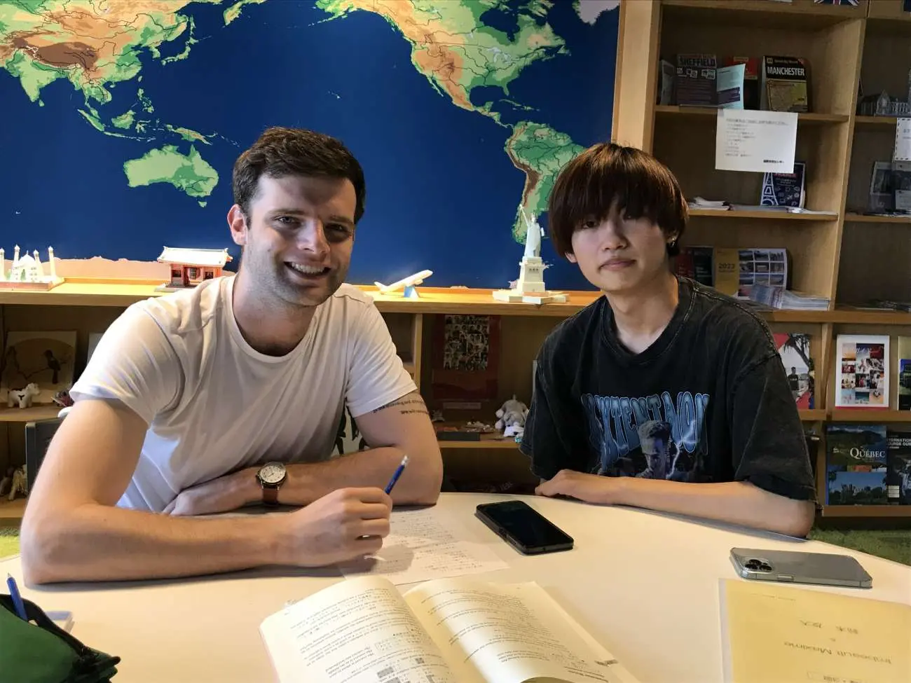 大東文化大学の学生が週1回、マンツーマンで日本語や日本文化について教えてくれます。希望者は来日後に国際交流センターへお申し出ください。