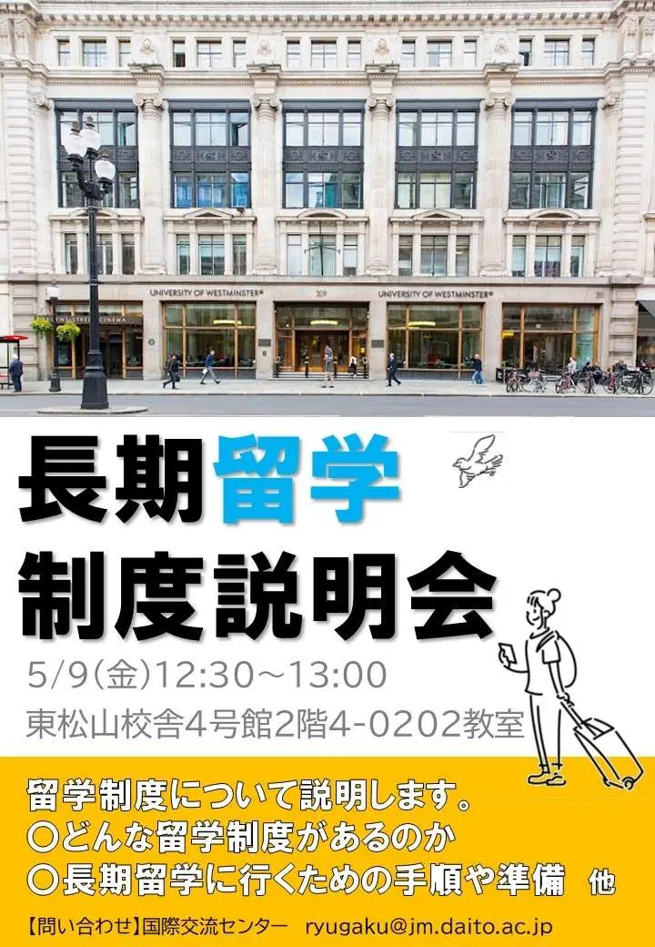5/9(金)長期留学制度説明会のお知らせ(説明会資料公開)