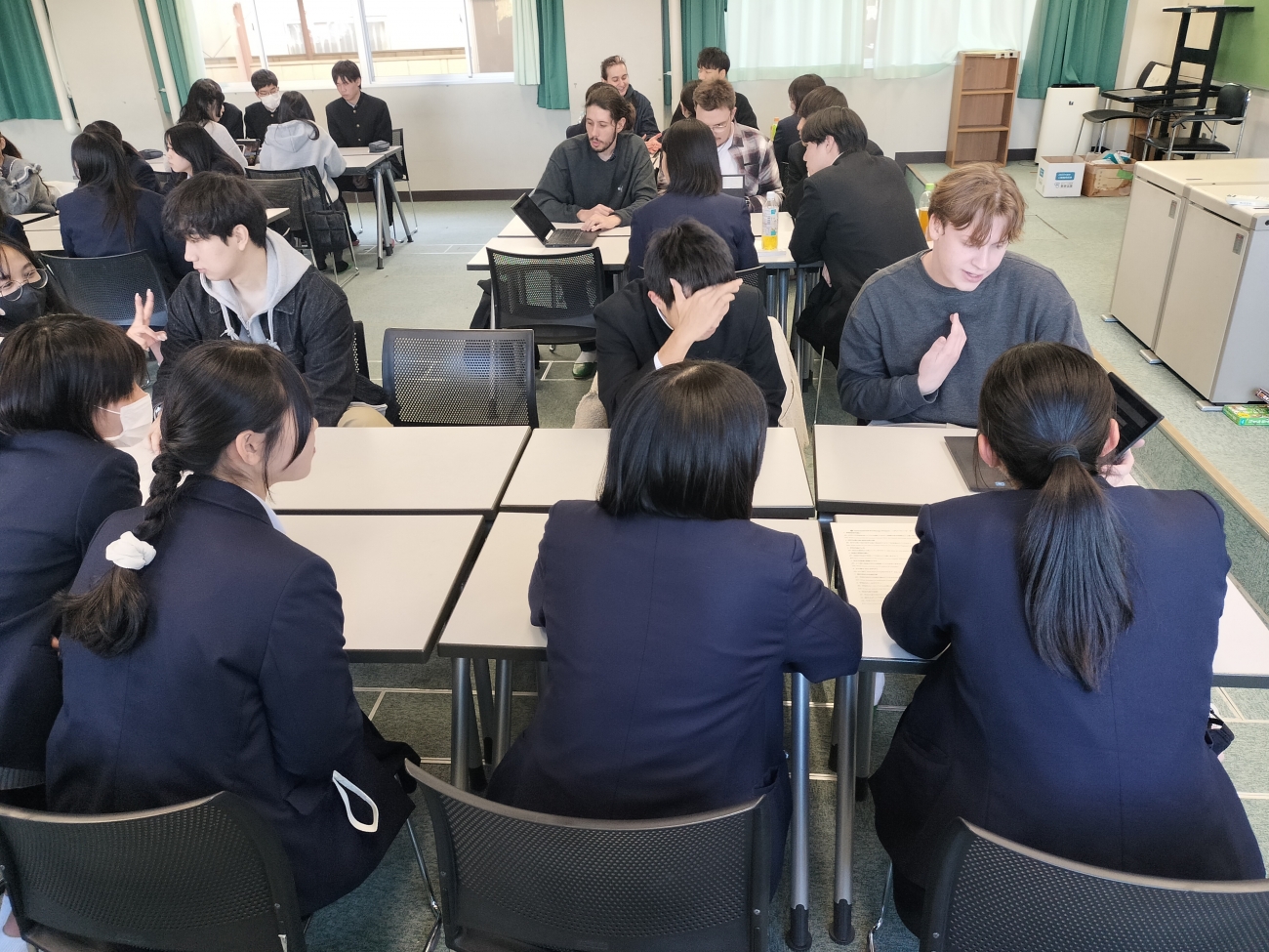坂戸高校の外国語に興味関心がある1年生から3年生までの生徒さんが教室で迎えてくれました。