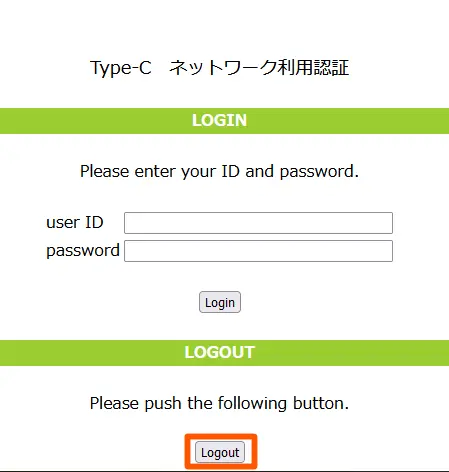 接続を終了する場合は、アドレス欄に以下のURLを入力し、[Logout]ボタンをクリックしてください。