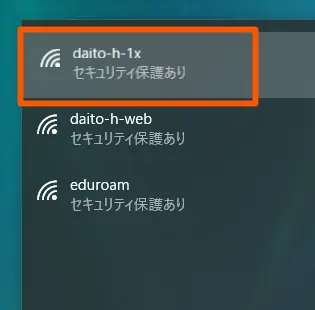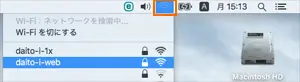 1.画面右上のWiFiアイコンを選択し、ネットワーク一覧から、各キャンパスの接続先を選択します。