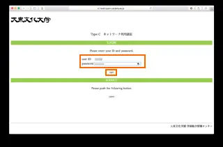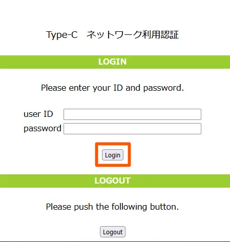 5. 「Type-C ネットワーク利用認証」の画面が表示されたら以下の手順でログインします。