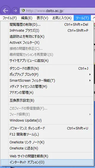 [ツール]メニューから、[インターネットオプション]を選択します。