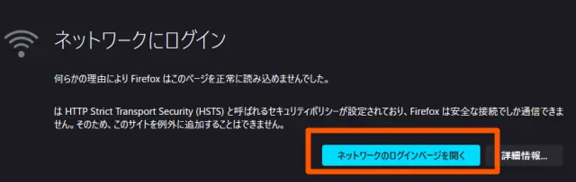 「ネットワークログイン画面を開く」が表示されたらそれをクリックします。