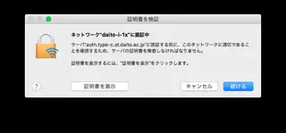 3. [証明書を検証]画面が表示されたら、[続ける]をクリックします。
