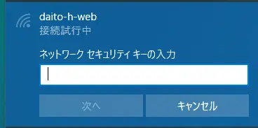 3. 接続する校舎の以下[ネットワークセキュリティキー]を入力し、[次へ]をクリック。
