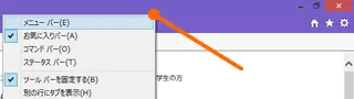 IEの[メニューバー]が表示されていなければ、ウィンドウの●部分を右クリックして、[メニューバー]を選択します。
