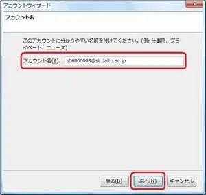 ※ユーザ名のみ表示されている部分に、「@st.daito.ac.jp」または「@ic.daito.ac.jp」を追記して、完全なメールアドレスが入力されている状態にしてください。