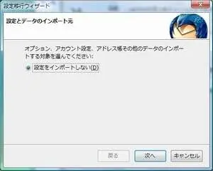 Thunderbird を起動すると、右の画面が出ますので、[設定をインポートしない] を選んで [次へ] をクリックします。