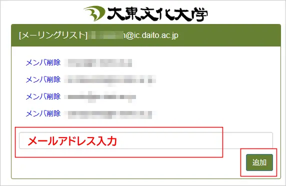 メーリングリストの作成・削除・メンバー変更は、学園総合情報センターが管理しています。