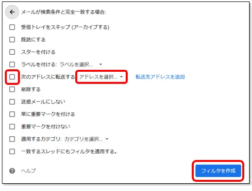 [次のアドレスに転送する]にチェックします。