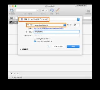 実習教室のMac環境においては、[Cyberduck(日本語版)](FTPソフト)を利用して、サーバーにWebページをアップロードすることができます。