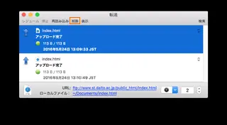 [転送]項目の中の、転送(アップロード)が完了した項目は、ここから削除して構いません。完了した項目を選択し、[削除]をクリックします。