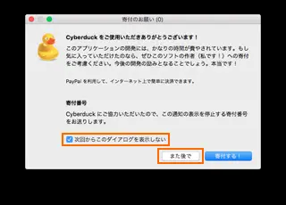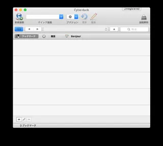 はじめて[Cyberduck]を利用する人は、右のような画面が表示されます。