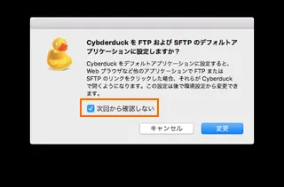 [次回から確認しない]をチェックして、[変更]をクリックします。