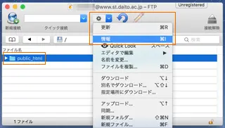 フォルダのアクセス権が適切に設定されていないとWebページが公開できません。初期状態では適切に設定されているはずですが、公開がうまくいかないときには、以下の手順で確認して下さい。