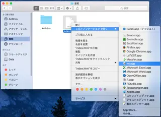 もう一度編集したいファイルを、Dockの[mi]アイコンにドラッグ&ドロップするか、[右クリック][このアプリケーションで開く]から[mi]を選択します。