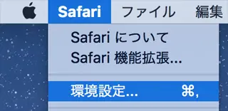 メニューバーの[Safari]メニューから、[環境設定]を選択します。
