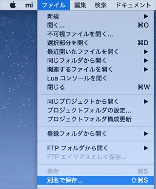 メニューバーの[ファイル]メニューから、[別名で保存]を選択します。