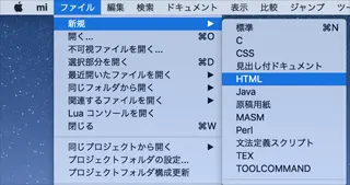 メニューから[ ファイル ] → [ 新規 ] → [ HTML ]を選択します。