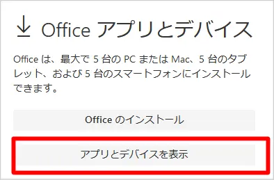 ※「Officeのインストール」ボタンをクリックするとインストール用ファイルがダウンロードされます。