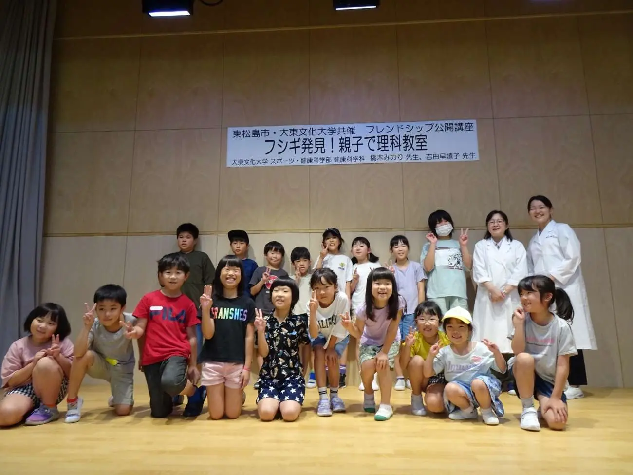 8月2・3日はスポーツ・健康科学部健康科学科の橋本みのり先生、吉田早嬉子先生の2名で、講師ごとに内容を分けて親子で楽しめる理科講座を行いました。