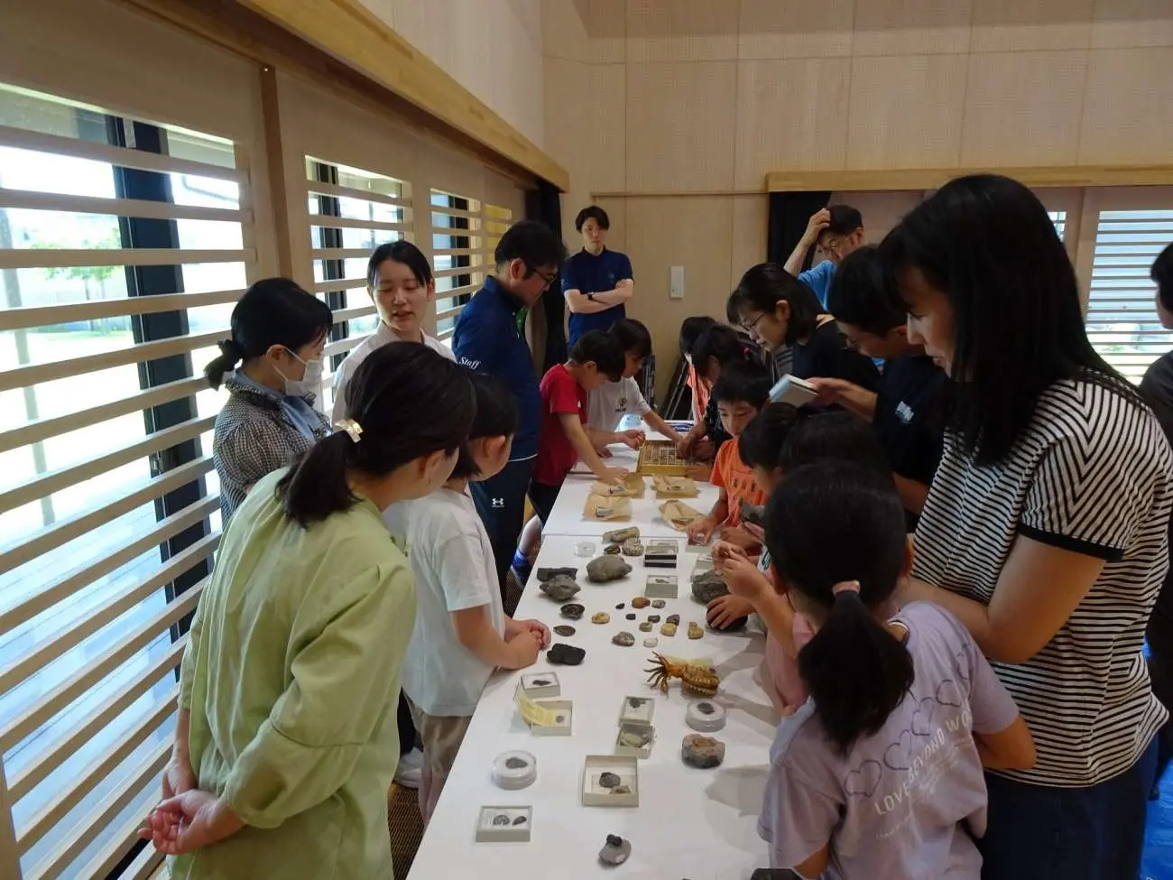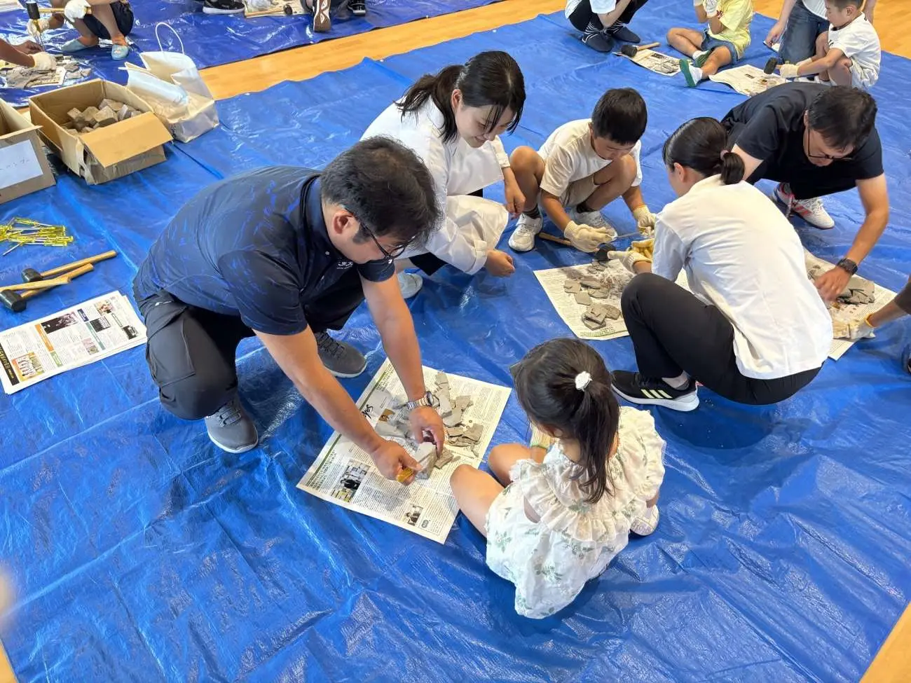 吉田早嬉子特任助手による「化石ができるしくみを学ぼう!」では、アンモナイトや三葉虫の模型の作製や、ハンマーを使って堆積岩に眠る木の葉化石の発掘体験を行ったほか、本物の化石を実際に手に取りながら成り立ちや仕組みを学んでいただきました。