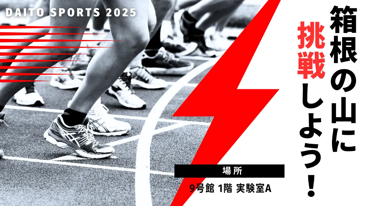 本学スポーツ科学科の教授によるイベントです。実験室にある”箱根の山を再現する機材”を使い、学生選手の走りを見学したり、実際に機材を使って坂を体験します(体験の対象は、小学4年生以上)。テレビで見るお正月の風物詩を、スポーツ科学の視点で見ていきます。あなたも山の神に近づけるかもしれません!講師