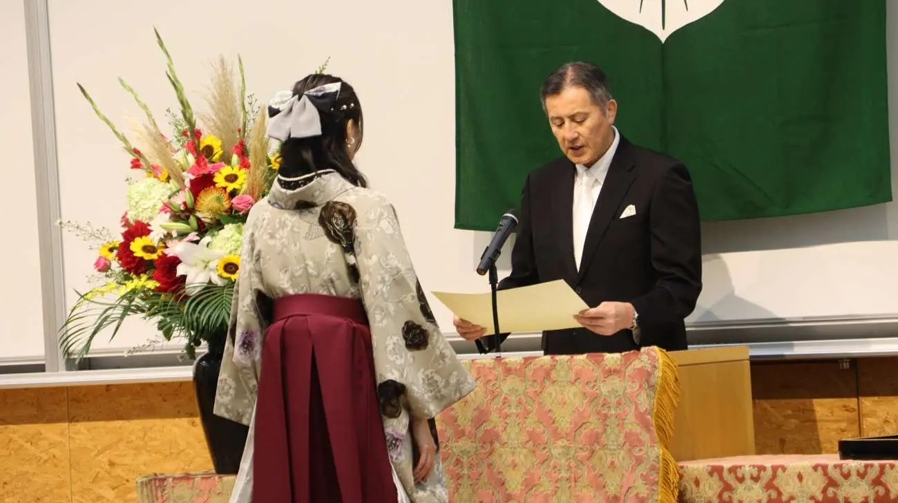 本日、皆さんがそれぞれの努力と情熱によって進んできた学びの道を歩み終え、新たな人生のステージへと踏み出されることを、心から嬉しく思います。