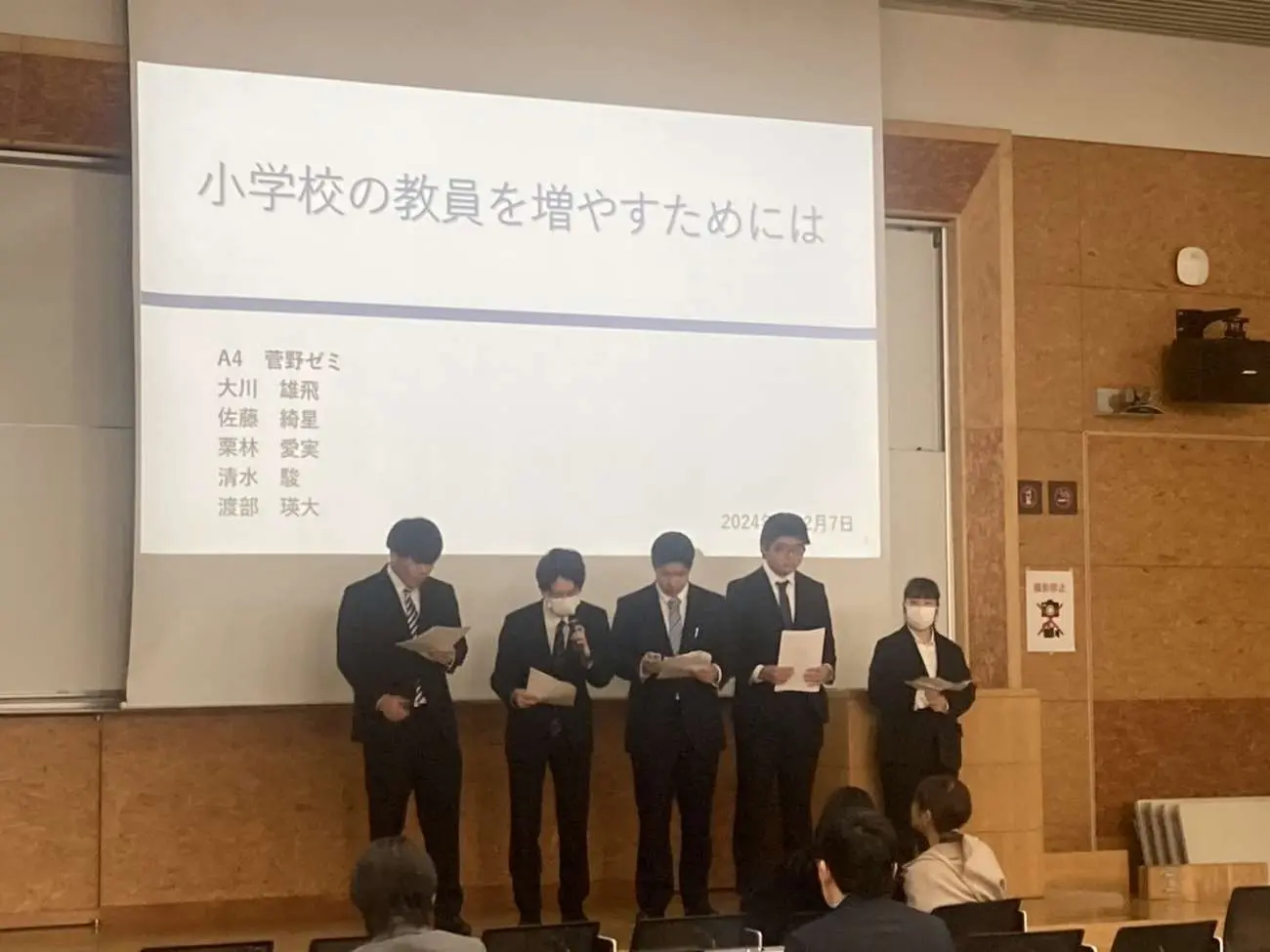 | 優秀賞 | 菅野ゼミ | 小学校の教員を増やす方法についての研究 |