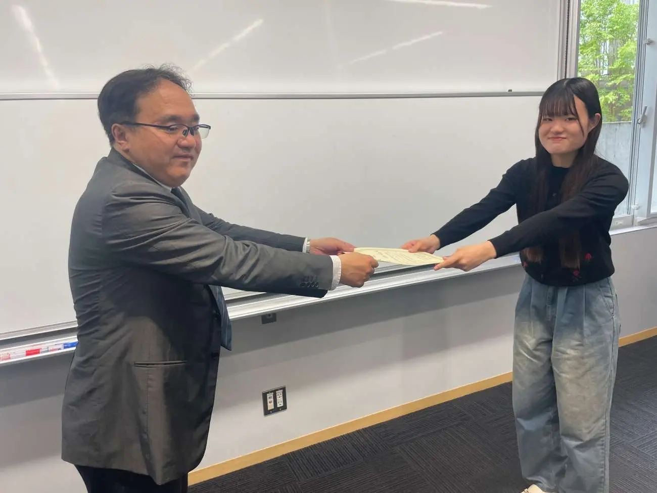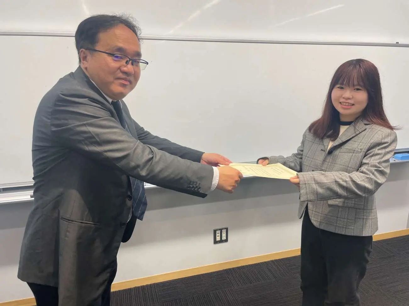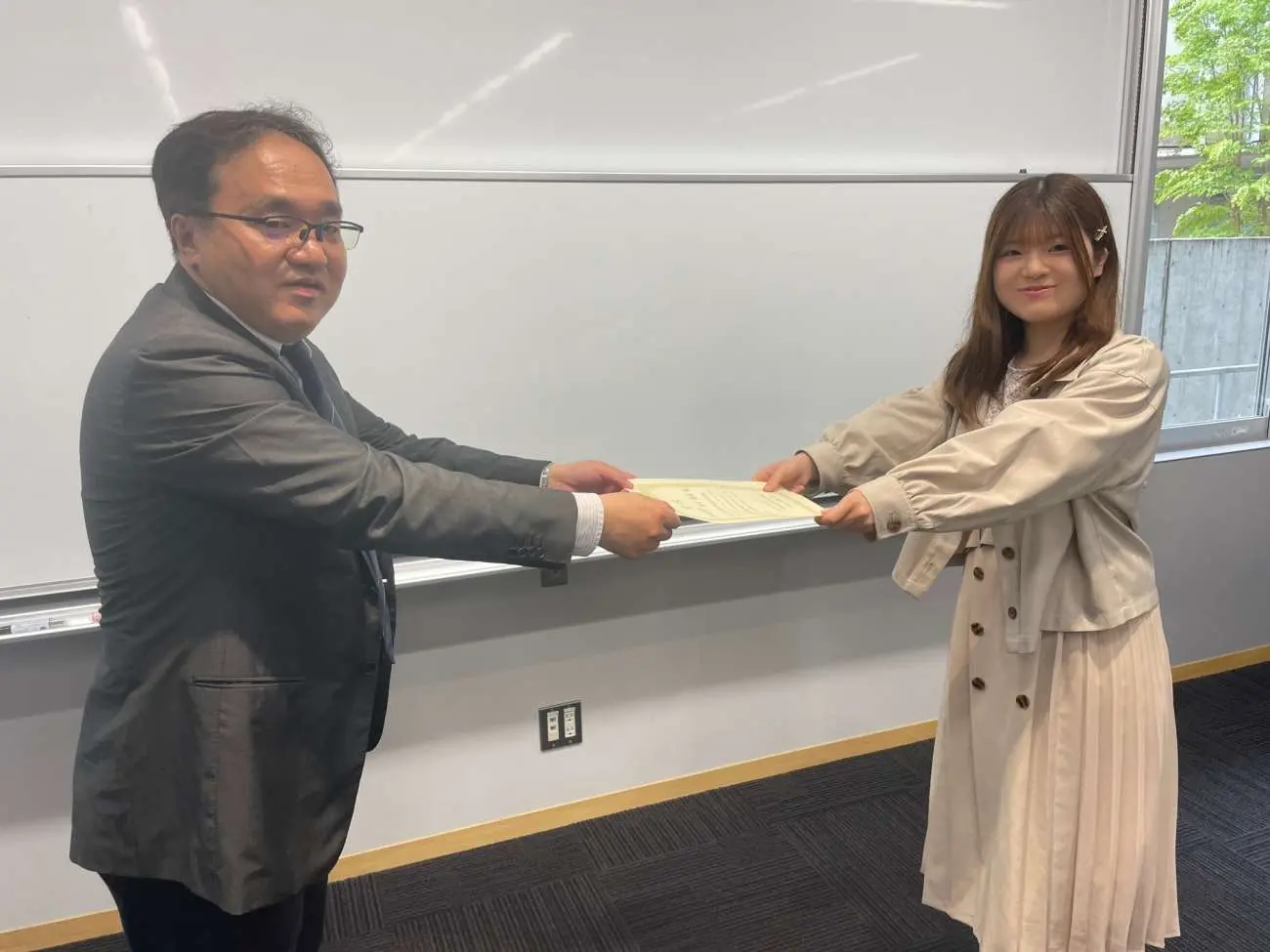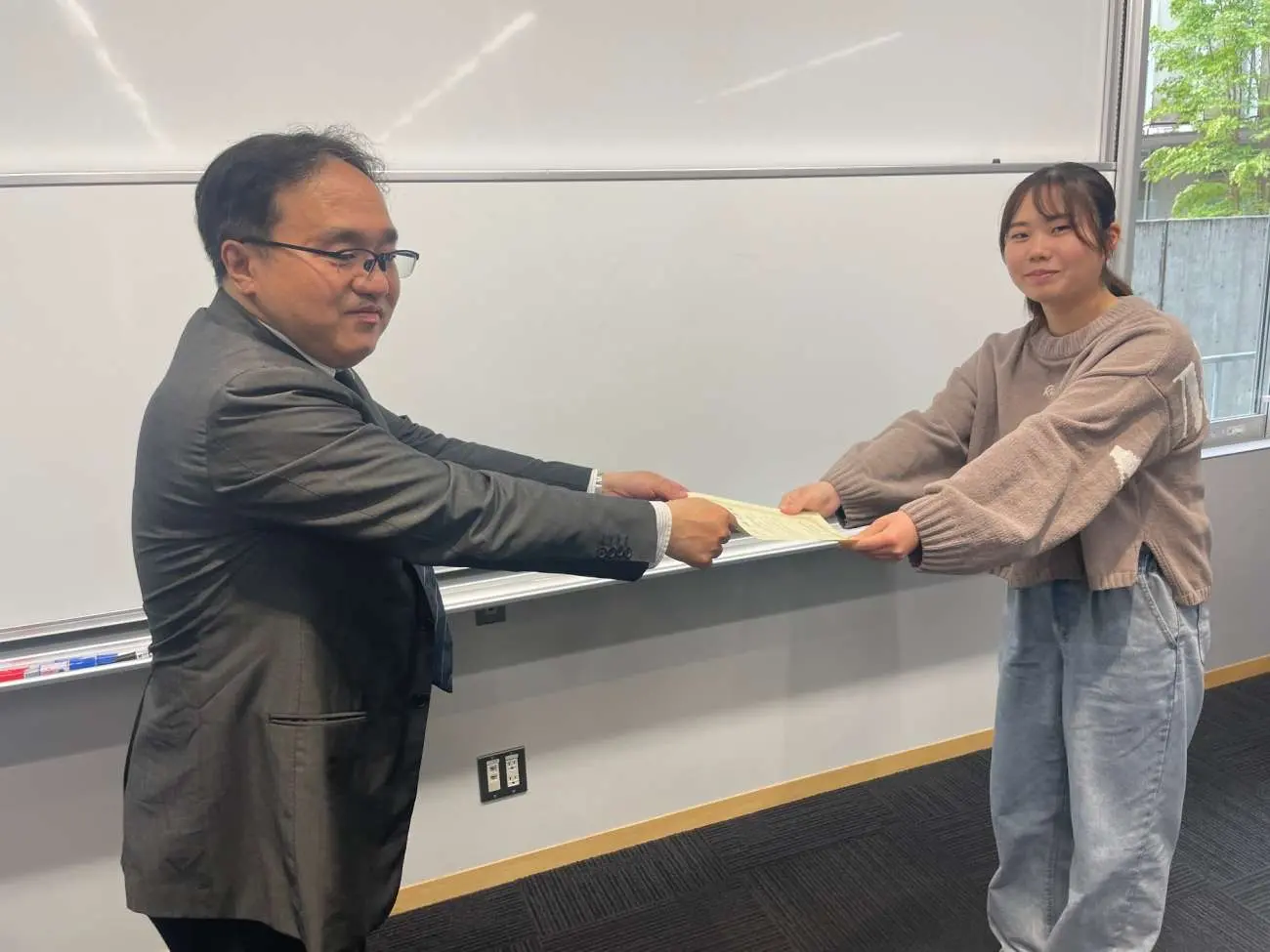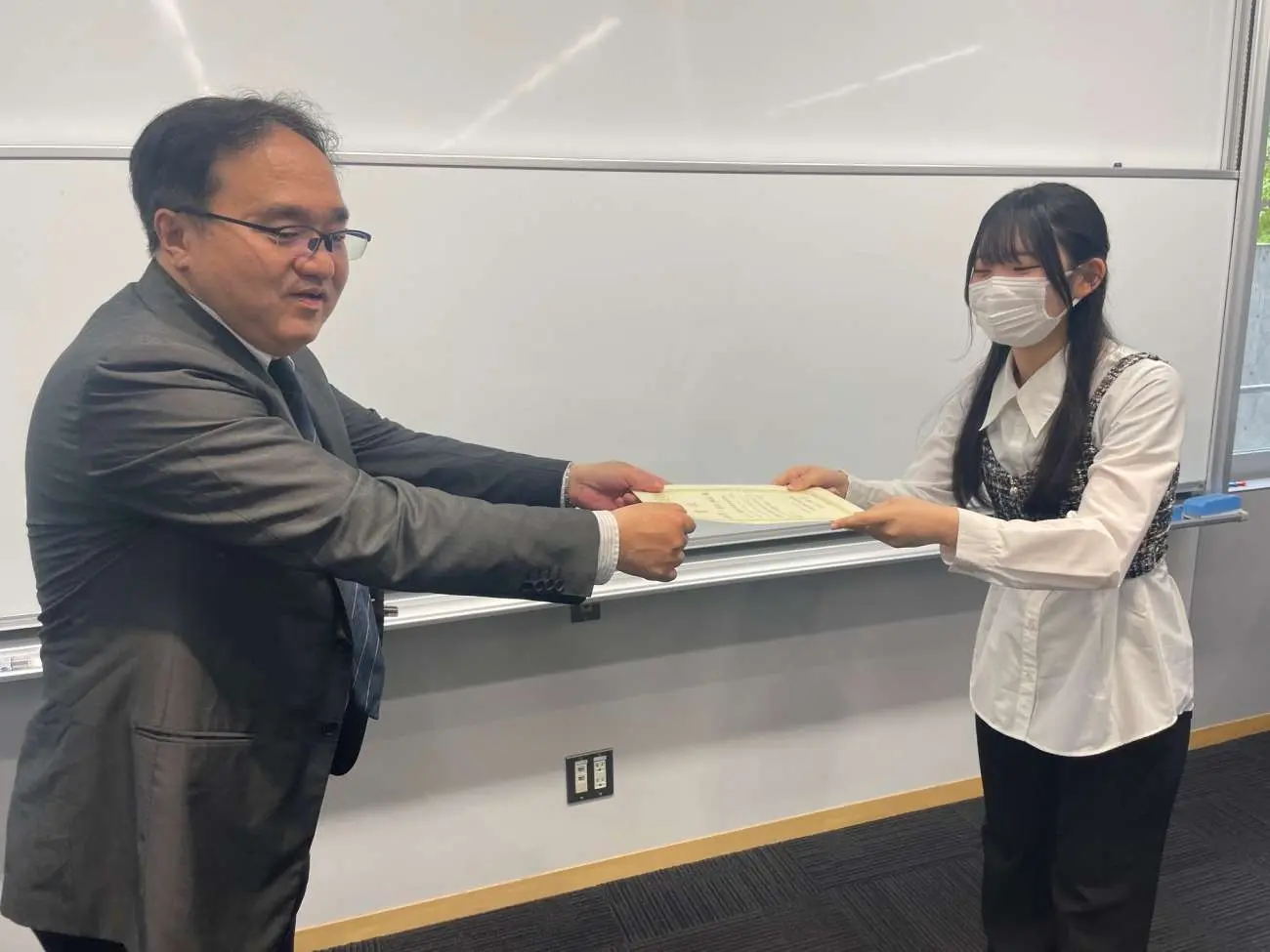 2024年度フレッシュマンセミナーレポートコンテストの優秀論文を執筆した学生に対する表彰式が4月23日、東松山キャンパスで行われました。鶴田佳史・社会学科主任より、対象者に対して賞状が手渡されました。