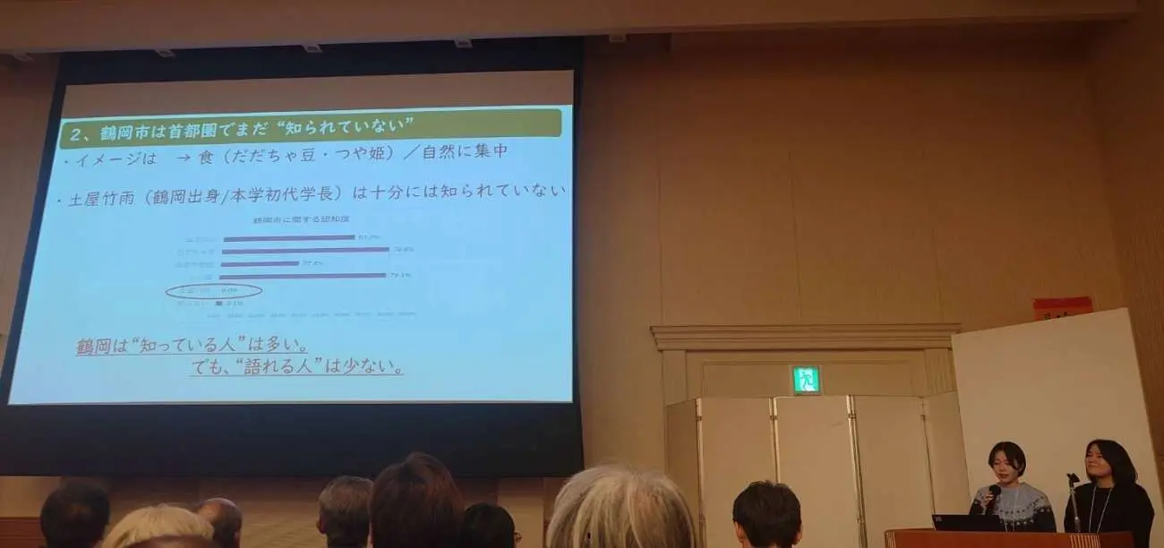 阿部英之助先生が担当する社会学演習Ⅱ(阿部ゼミ)の学生2名が、2月6日に江戸川区で開催された鶴岡市市政報告会で、鶴岡市に関する調査成果を発表しました。