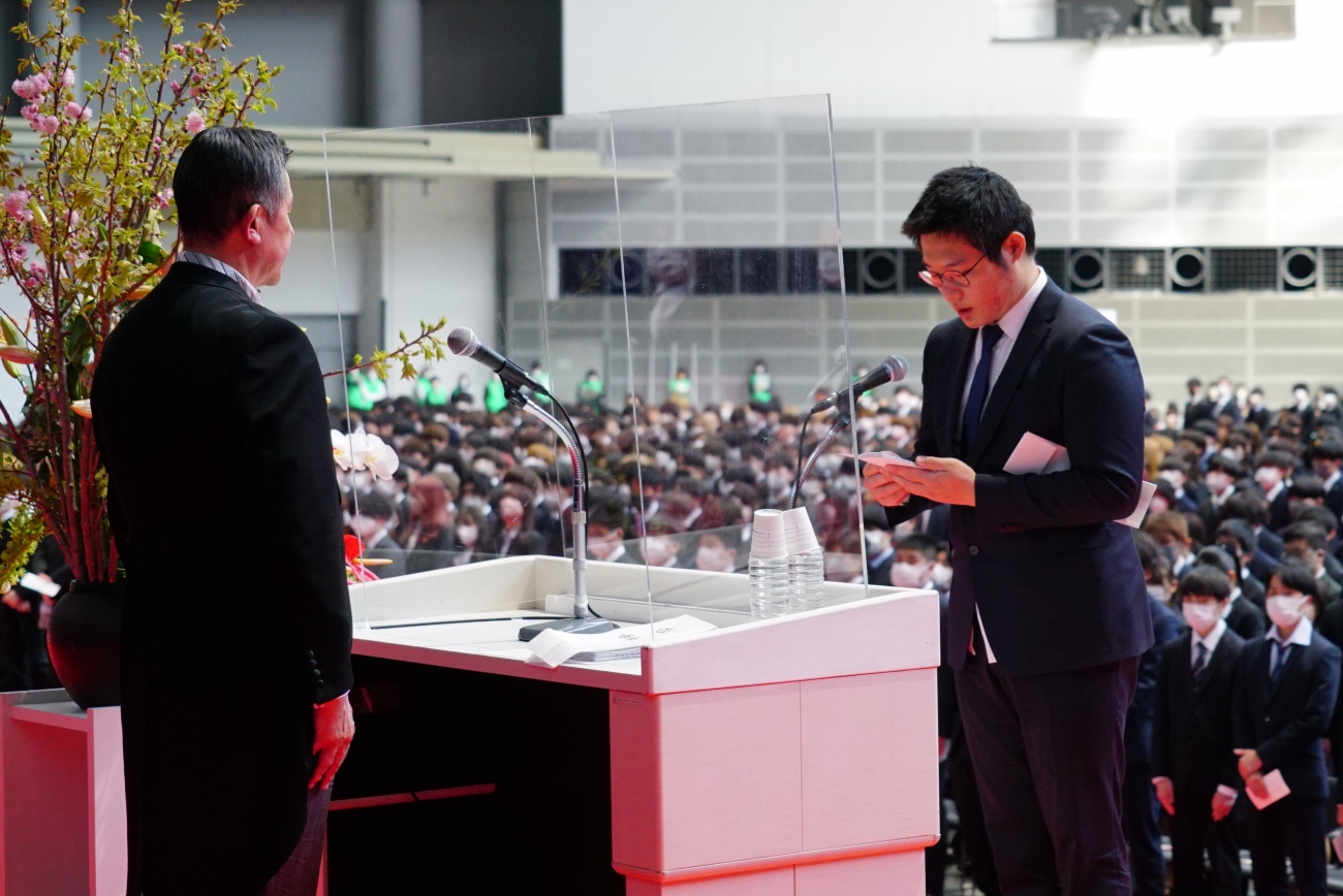 春の訪れが感じられるこの良き日に、私たちは大東文化大学の学生となりました。この歴史と伝統のある大東文化大学に入学し、大学生活を送れることに、大変感激しております。また本日は私たち新入生のためにこのような盛大な式典を挙行していただき、心より御礼申し上げます。
