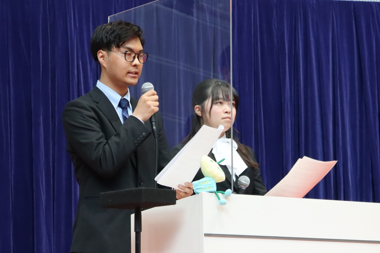 最後に新入生一同、本学の「建学の精神」に基づいた学びへの姿勢と学則を遵守し、未来に向かって日々研鑽に励み、更なる発展のために精進していくことをここに誓います。