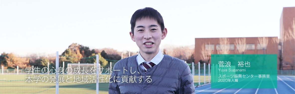 本学の事務職員を志望したときからスポーツ振興センターで学生の課外活動(スポーツ活動)を支援したいと思っていたので、多くの部署や団体と連携して学生の部活動を支える業務に従事できているという点にやりがいを感じています。