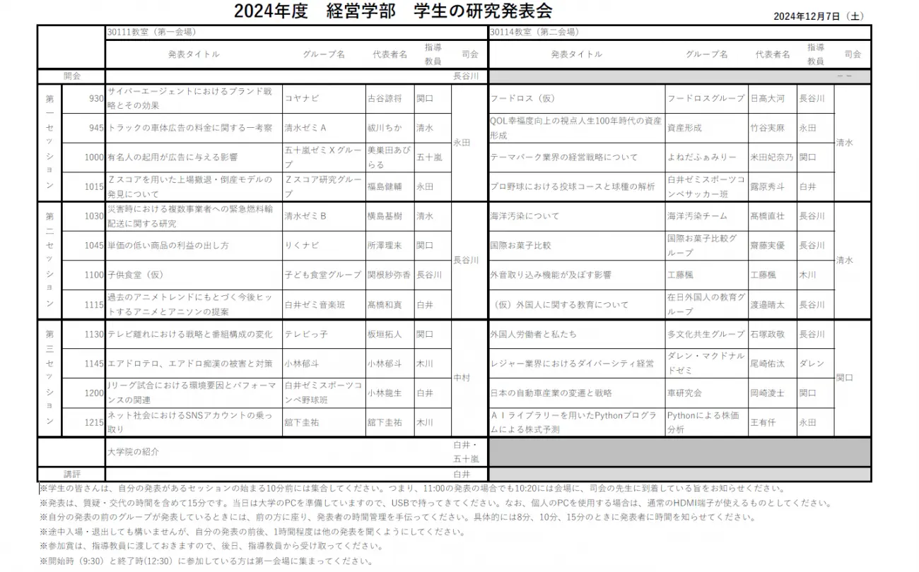 経営研究所では、学生たちに発表する機会を提供するため、2023年度から「学生の研究発表会」を開催しています。