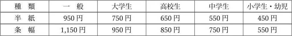半紙の部(普通半紙判・横書き不可)、条幅の部(半切サイズに限る、対聯・横書き不可)