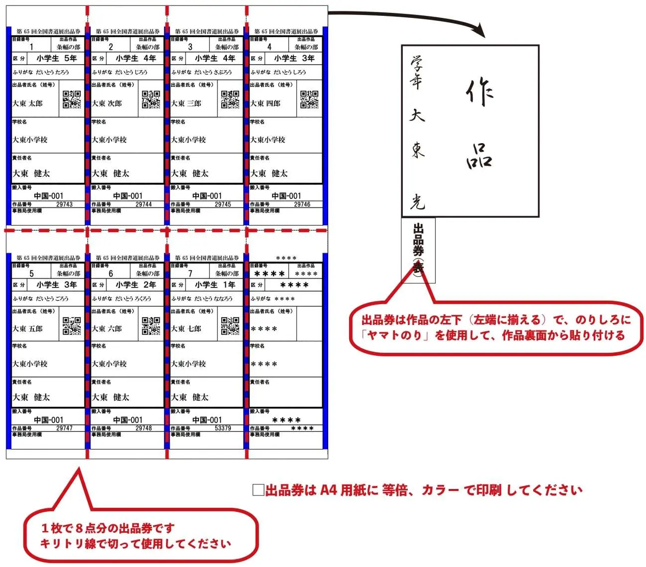 □出品券は書道展サイトから各項目記入済みの状態で印刷できます