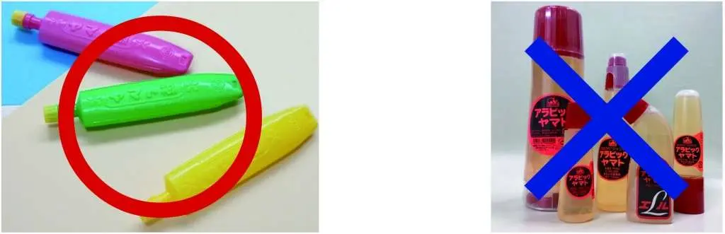 「アラビックスティックのり」やスティックのりは絶対に使用しないでください