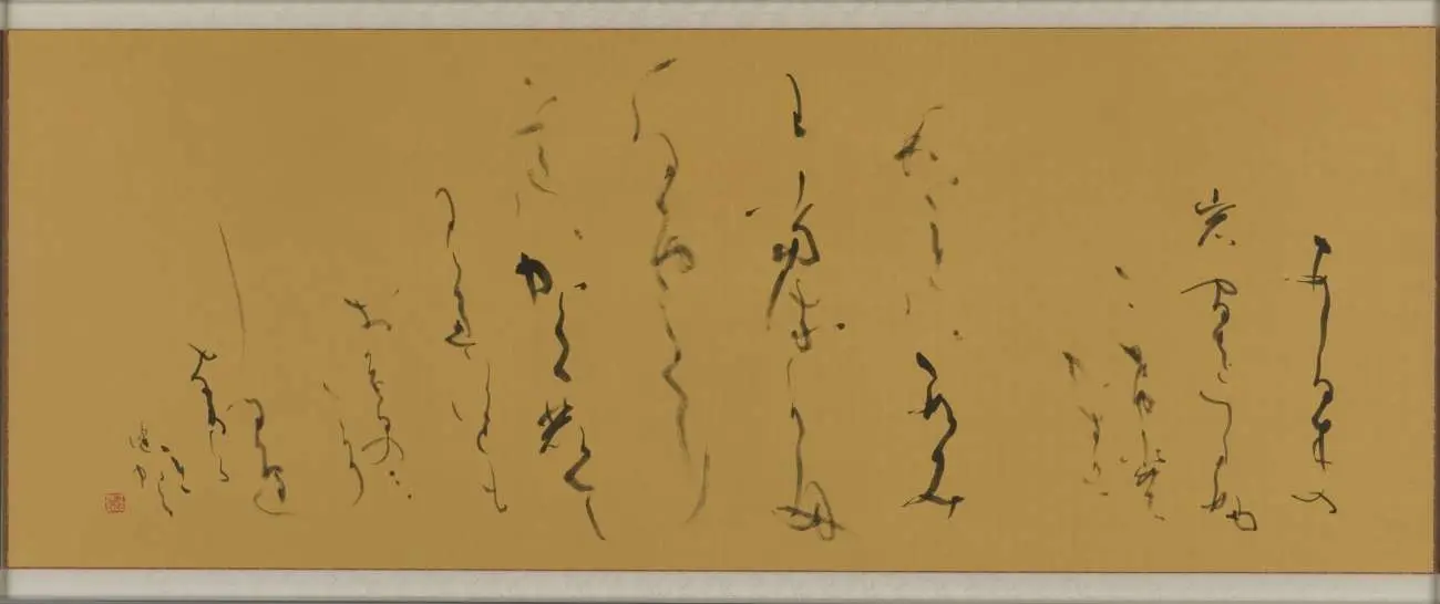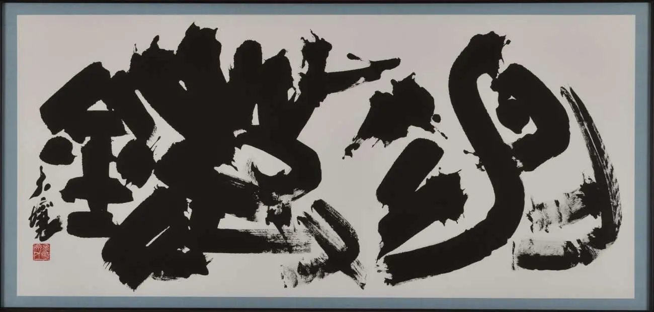 角田さん:精緻な筆致による鮮やかな線と墨氣は、作品に生命を吹き込む。下半にある渇筆が豊かな表情を生み出し、上半の白との均衡を保つ巧妙な構成となっている。この高度な書技と構成の発想は、独自の魅力と言える。