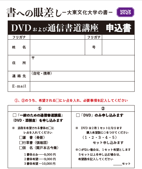 □本講座で使用するDVD の著作権は大東文化大学書道研究所にあります。購入者以外の方への複製(コピー)、譲渡、転売、レンタ