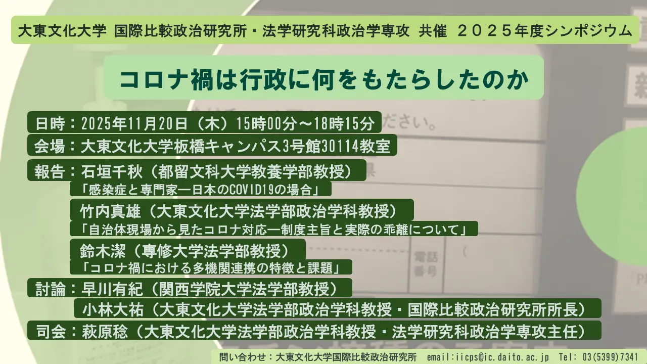 大東文化大学国際比較政治研究所・法学研究科共催2025年度シンポジウム