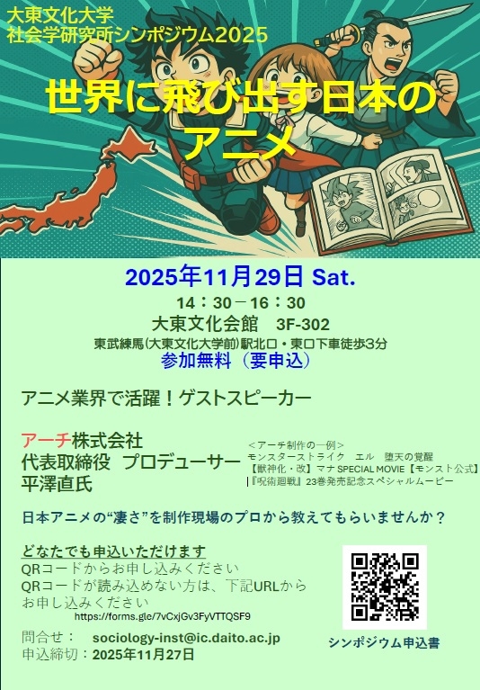 世界に飛び出す日本のアニメと題して、社会学研究所シンポジウム2025を行います。