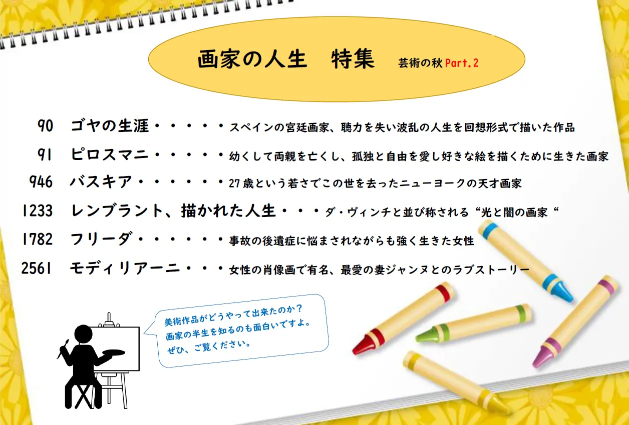 “画家”と聞いたら誰を思い出しますか? 世界的なピカソ? 爆発する岡本太郎? 映画の主人公として画家の人生を観ると、作品に込められた深い意味を知ることができます。