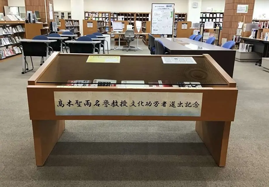東松山図書館1階にて「髙木茂行名誉教授 文化功労者選出記念」を開催しています。