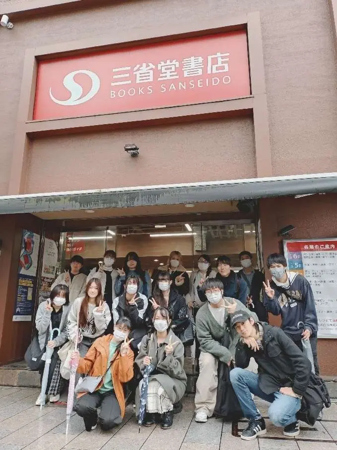 恒例行事となりました図書館ボランティア学生による選書ツアーが11月9日(日)に開催され、16名が老舗本屋の三省堂書店神保町本店(創業明治14年)へ赴き、東松山図書館に置きたい本を選びました。