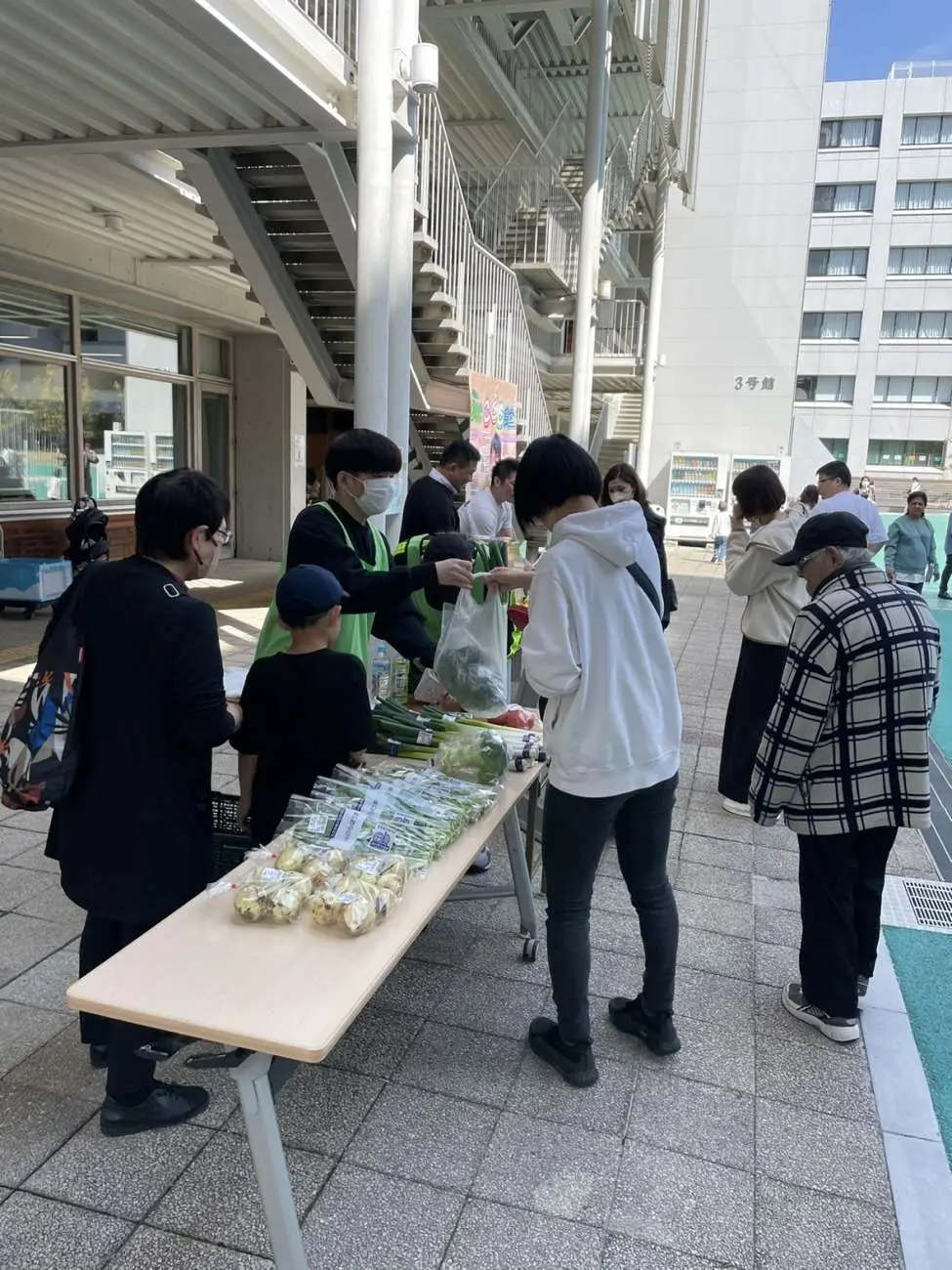 3号館で実施した【つくって楽しむ!大東ワークショップ】では、スポーツ・健康科学部教授の蕪木智子先生による栄養状態を確認するベジチェック、本学書道部学生による書道体験教室、オリジナル缶バッジ作製を行い、屋外エリアでは、水風船ヨーヨーすくいや、TABETEレスキュー直売所による野菜販売、株式会社大塚応援カンパニー様によるお弁当・軽食販売を行いました。