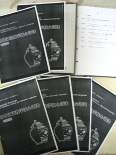 写真右上にある開かれた冊子はインターンシップ報告書です。これまでにインターンシップに参加者の報告書がまとめられています。他の冊子は現在ゼミで使用しているテキストで、中は全て中国語で書かれています。