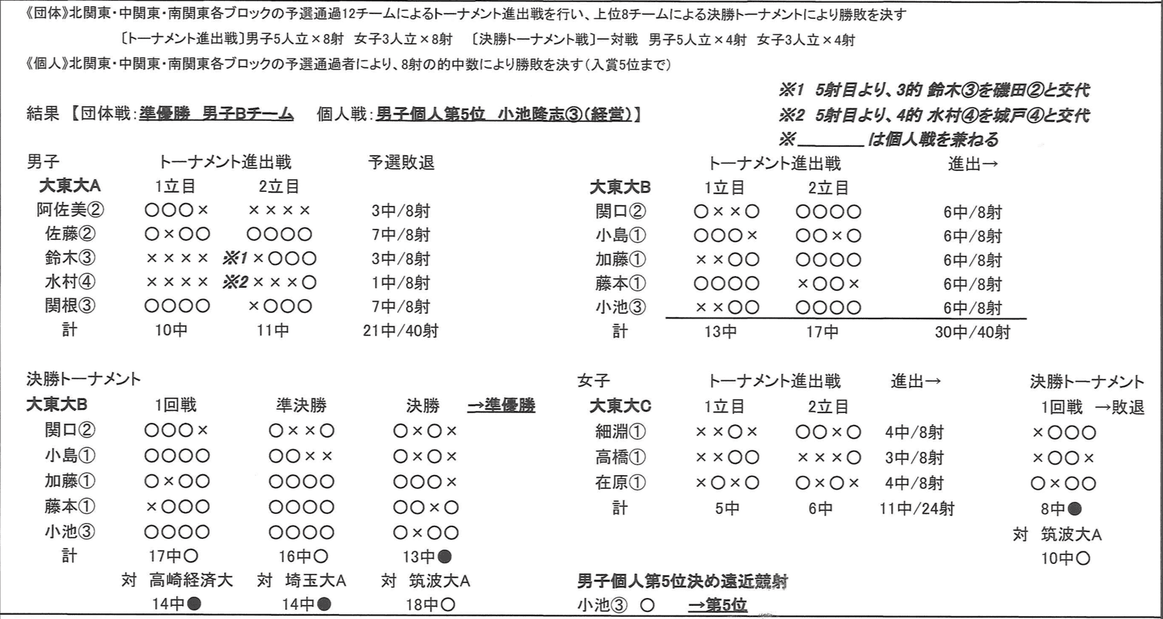 《予選》(3人X4射/12射)上位24校が決勝トーナメント進出